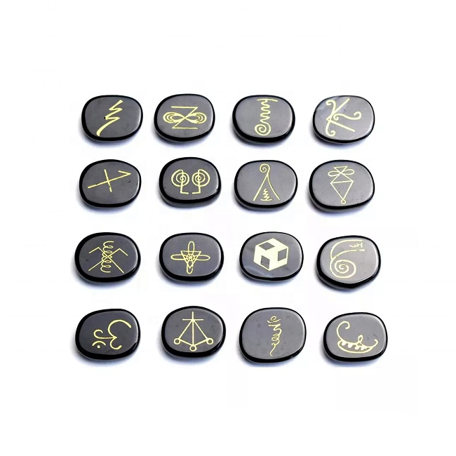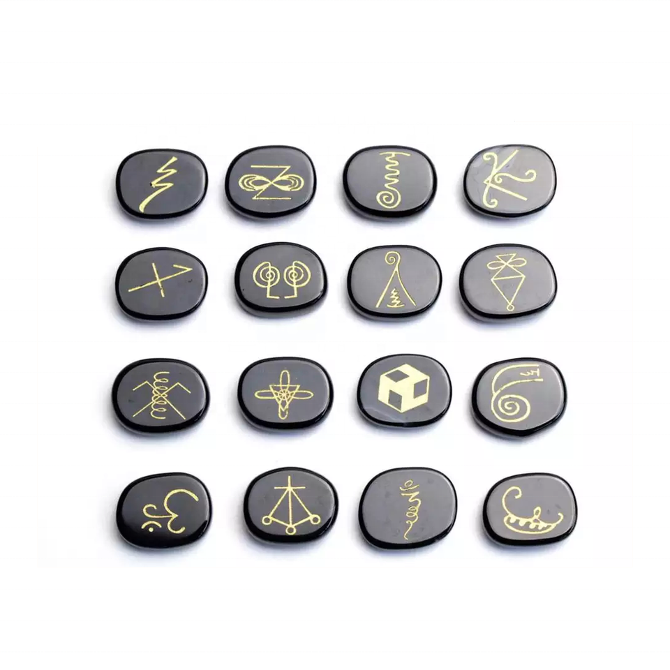 Karuna de haute qualité pierre de palmier en forme d'obsidienne noire 16 pièces ensemble karuna pierre précieuse en cristal de guérison naturelle ensemble Karuna en gros