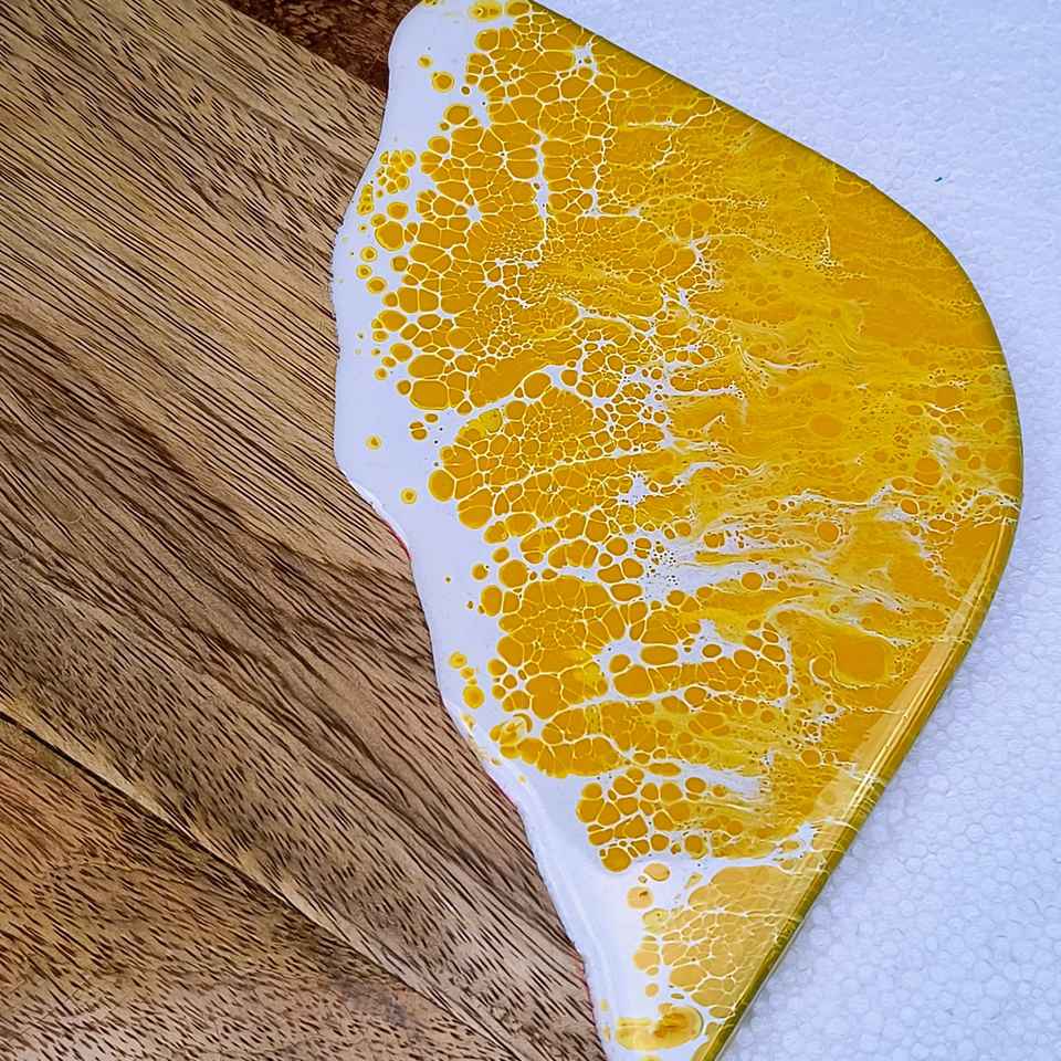 Planche à découper ronde en bois d'acacia artisanale avec motif de vague bleu en résine, service de fromage polyvalent cuisine préparation de repas vente en gros