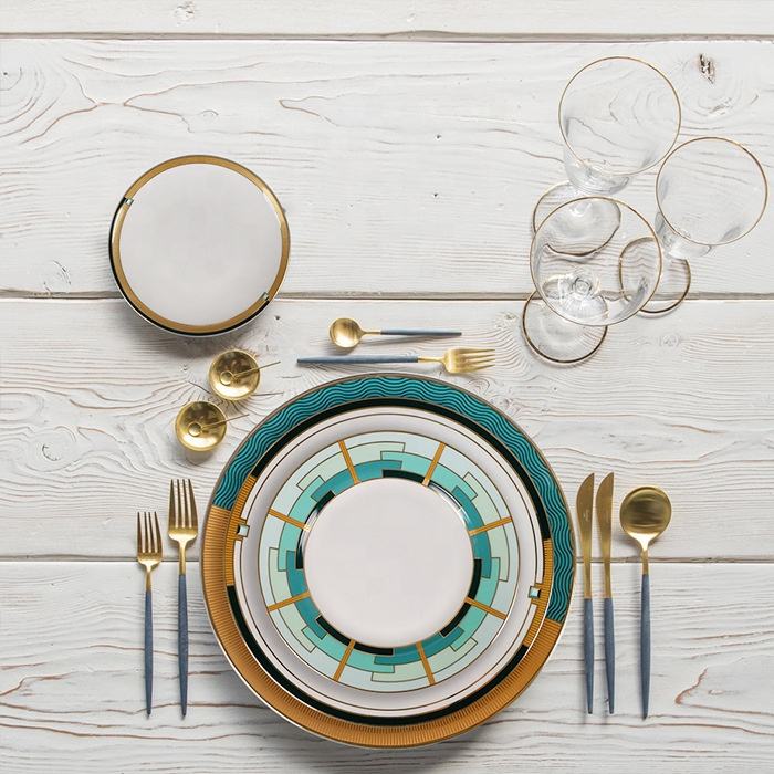 Accessoire de cuisine de haute qualité décor de mariage Art élégant ensembles de dîner en porcelaine fine plat de luxe pour dubaï