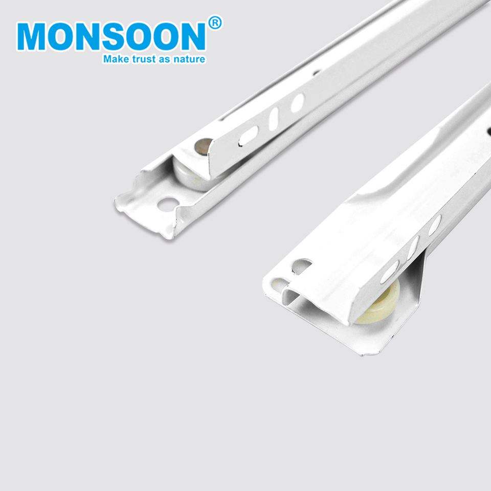 Glissières de tiroir à montage inférieur de haute qualité pour armoires de cuisine et de chambre, en métal thermolaqué blanc, quincaillerie de meubles à roulettes