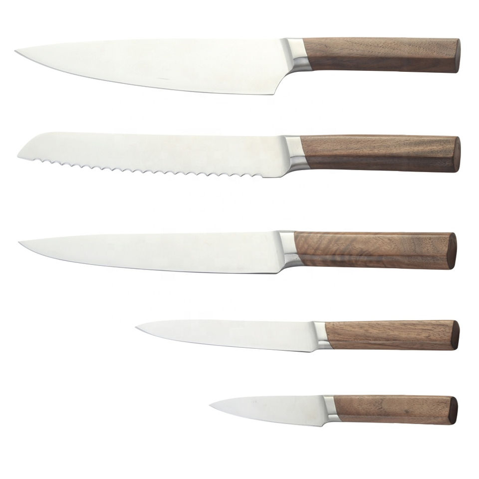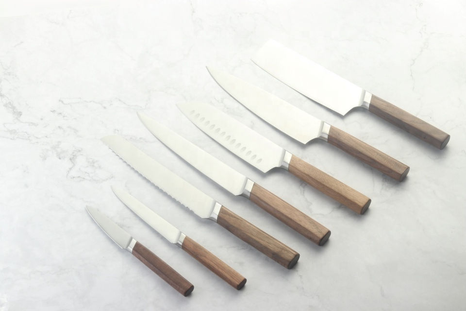 Ensemble de couteaux de cuisine de haute qualité avec manches en bois véritable et fourche en acier inoxydable forgé