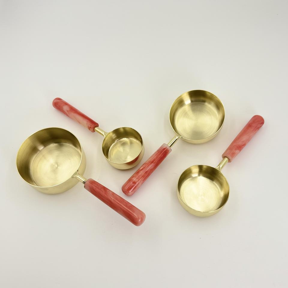 Ensemble de 4 tasses et cuillères à mesurer en acier inoxydable doré avec poignée en résine de haute qualité, résistant au lave-vaisselle et au congélateur