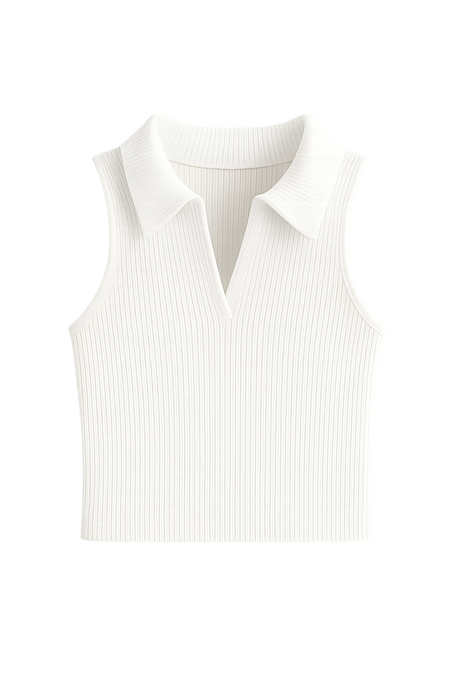 RIBBED KNIT CROP POLO TANK