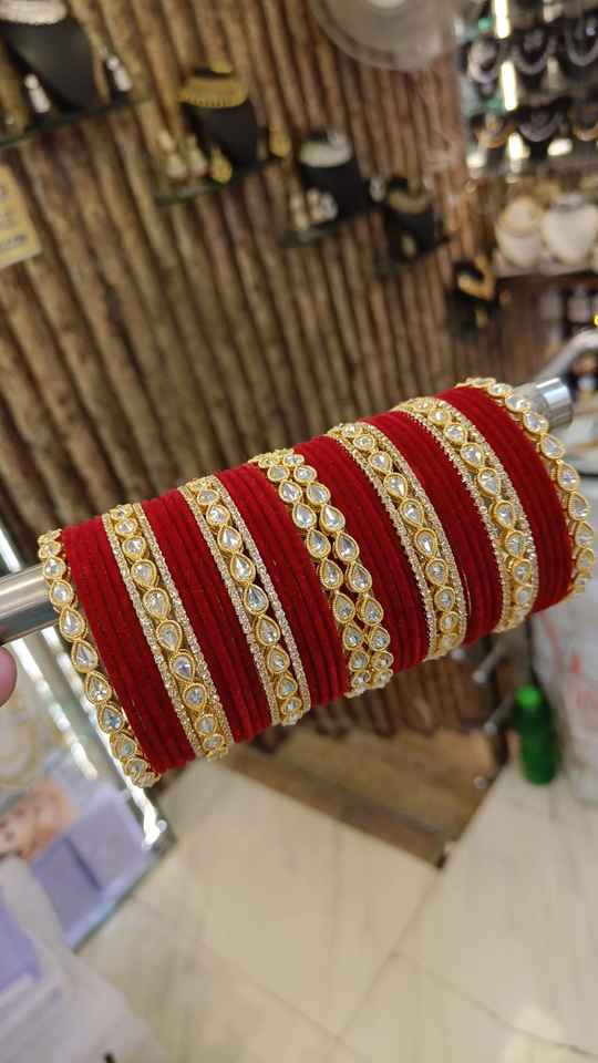 Ensemble de bracelets Kundan de haute qualité pour femmes avec finition au toucher velours Bracelets de mariée ethniques indiens traditionnels pour une occasion spéciale