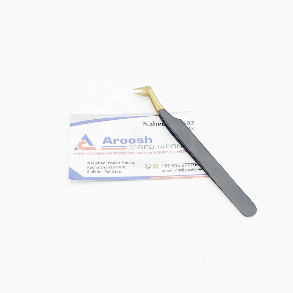 High Quality Professional L-Shape Stainless Steel Tweezers Gold Pointed Tip for Eyelash Extension Custom Logo Sustainable