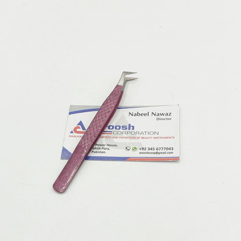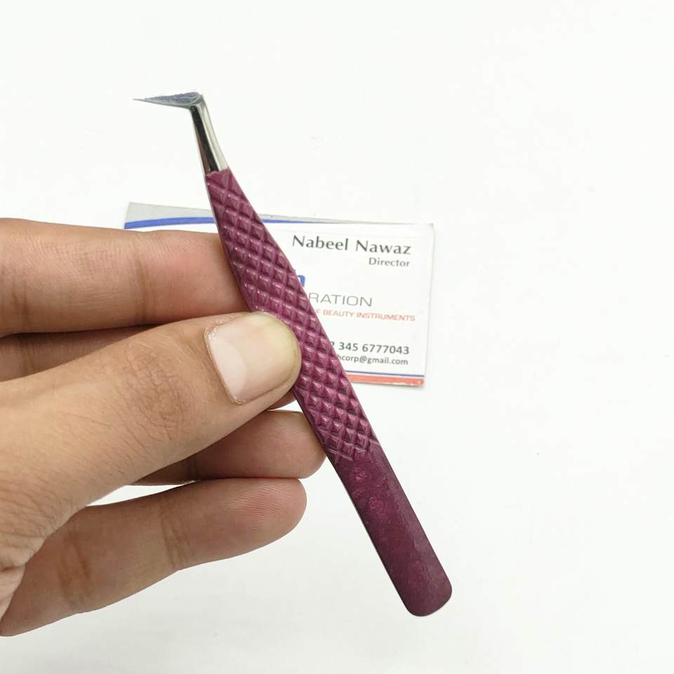 Haute qualité L Type violet durable en acier pince à épiler d'extension de cils pointe pointue poignée en gros de diamant