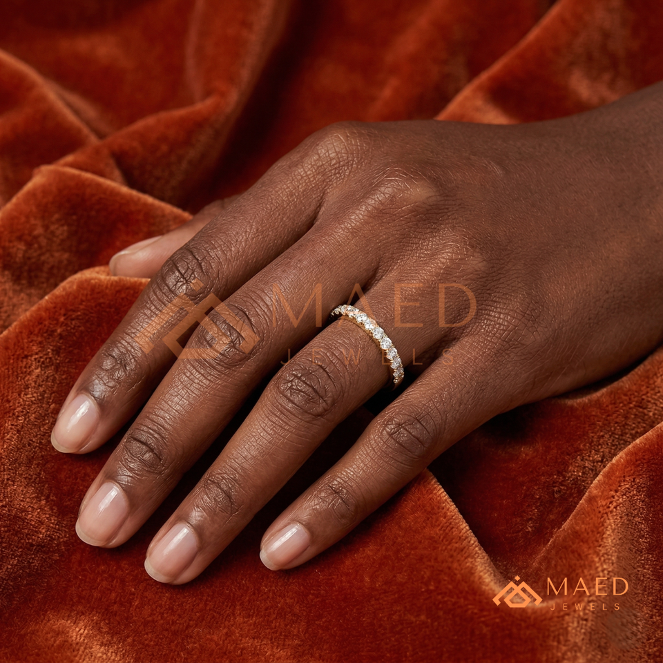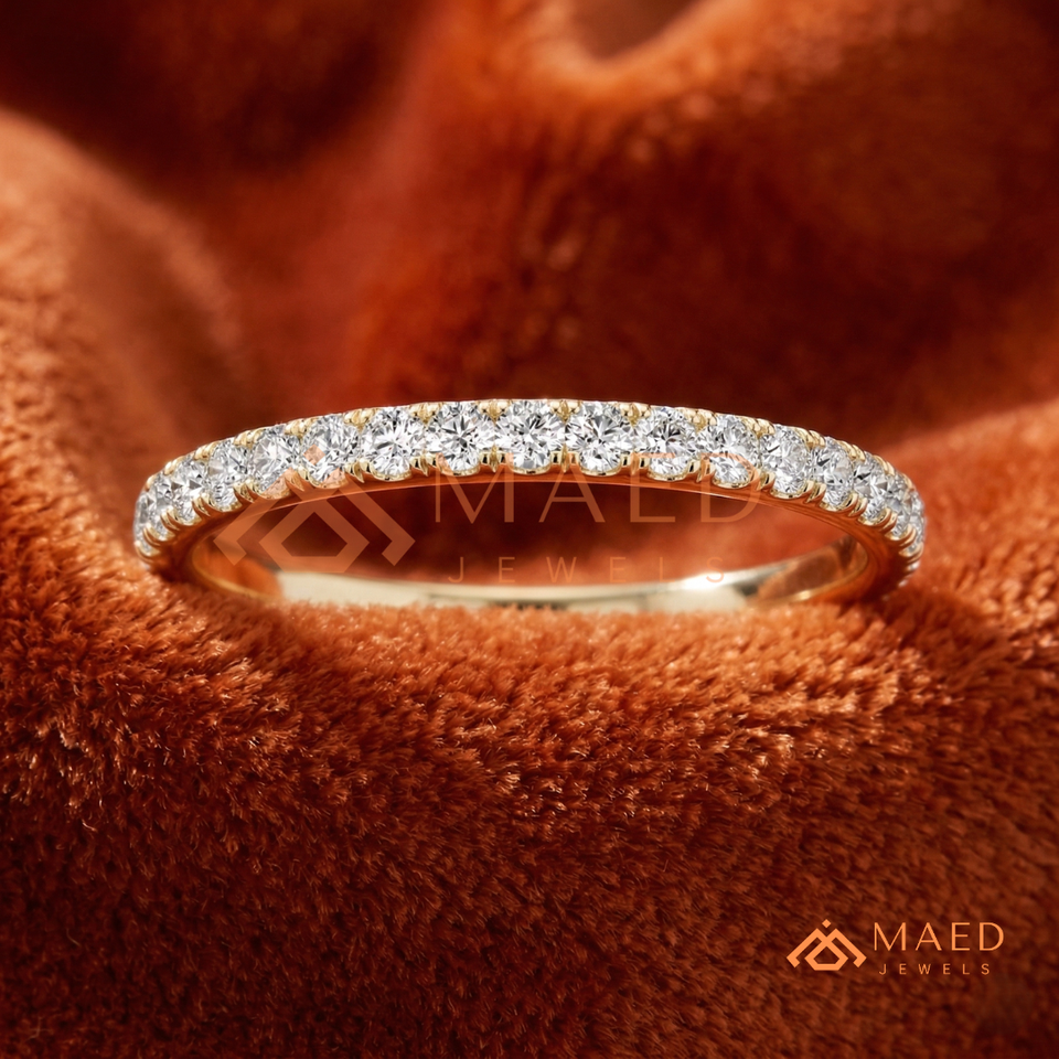 Bague en diamant de laboratoire de haute qualité plaquée or 14 carats, alliance semi-éternelle avec micro-pavé, bagues de mariage, bijoux de mariée