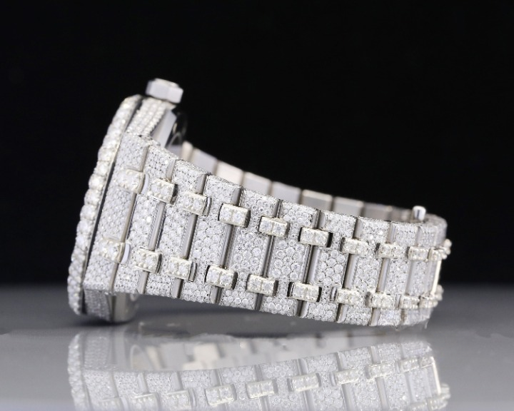 Montre analogique en cuir sport avec cadran en verre, sertie de diamants de laboratoire de haute qualité, bijoux hip-hop, luxe, bling, vente en gros