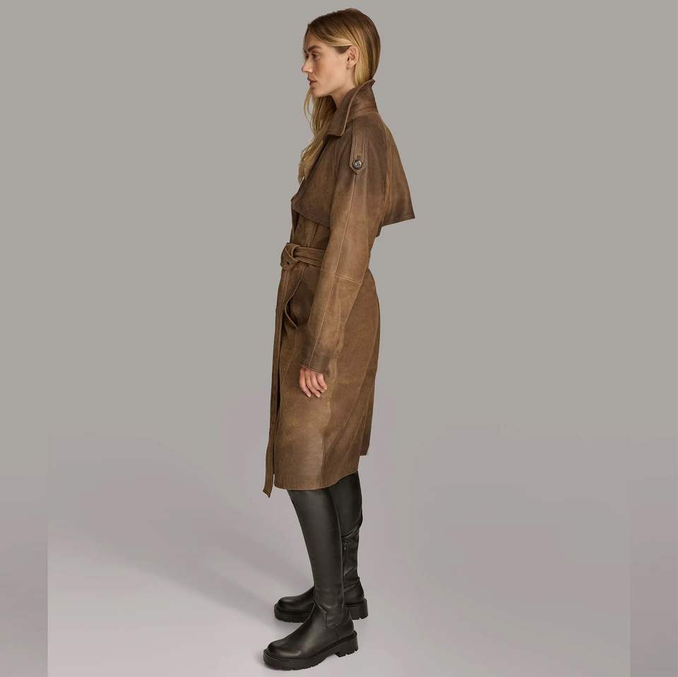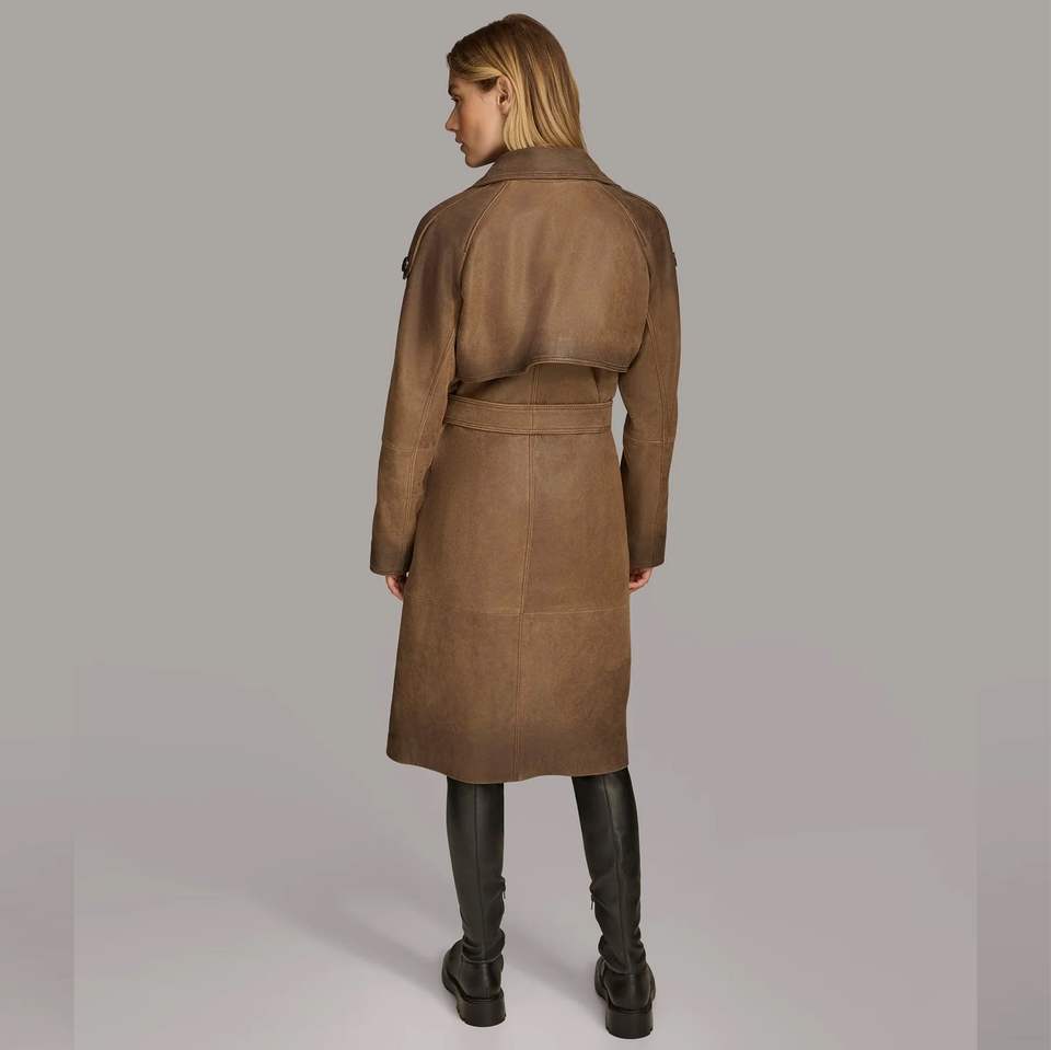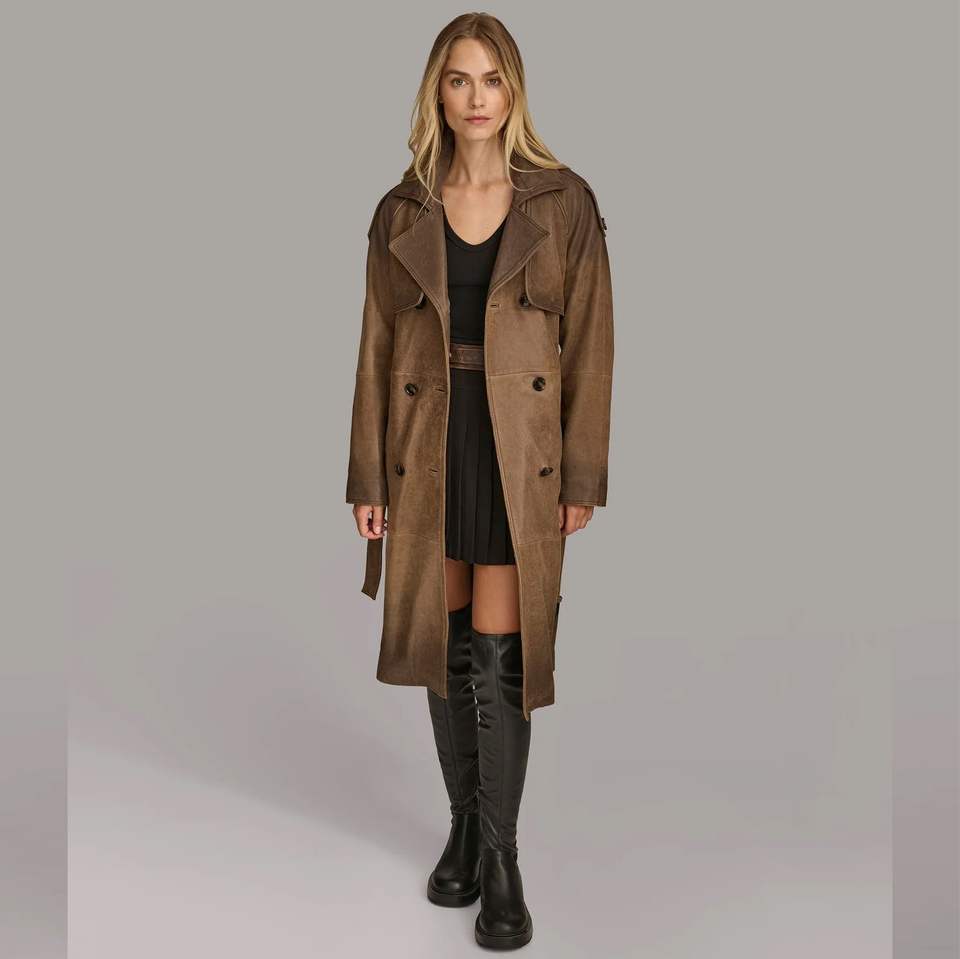 Veste en cuir véritable de haute qualité pour femmes grande taille Trench-Coat long avec décoration de boutons de style décontracté et doublure en soie