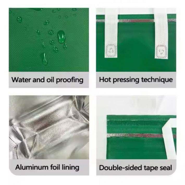 Sac isotherme de grande taille de haute qualité, non tissé, jetable, thermique, avec fermeture autocollante pour le stockage des aliments de pique-nique