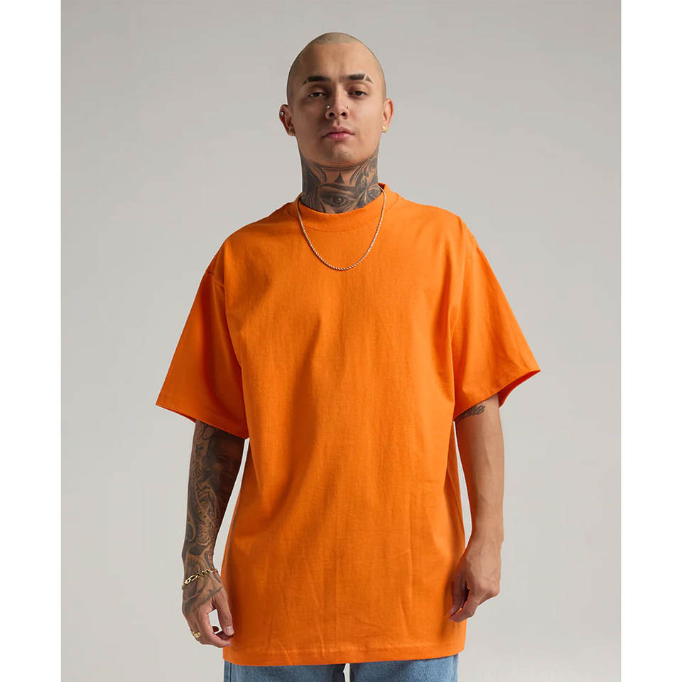 High Quality Large Fitness T-Shirt Plus Size Streetwear Fashion Fit Men Solid Round Neck Cotton Blend Orange T-Shirt