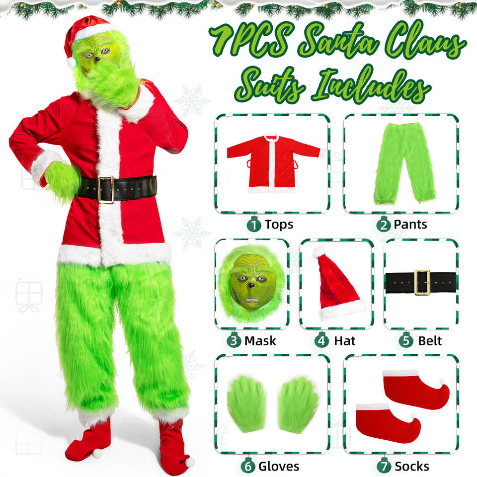 Costume de Noël en peluche de grande taille de haute qualité + masque pour adulte