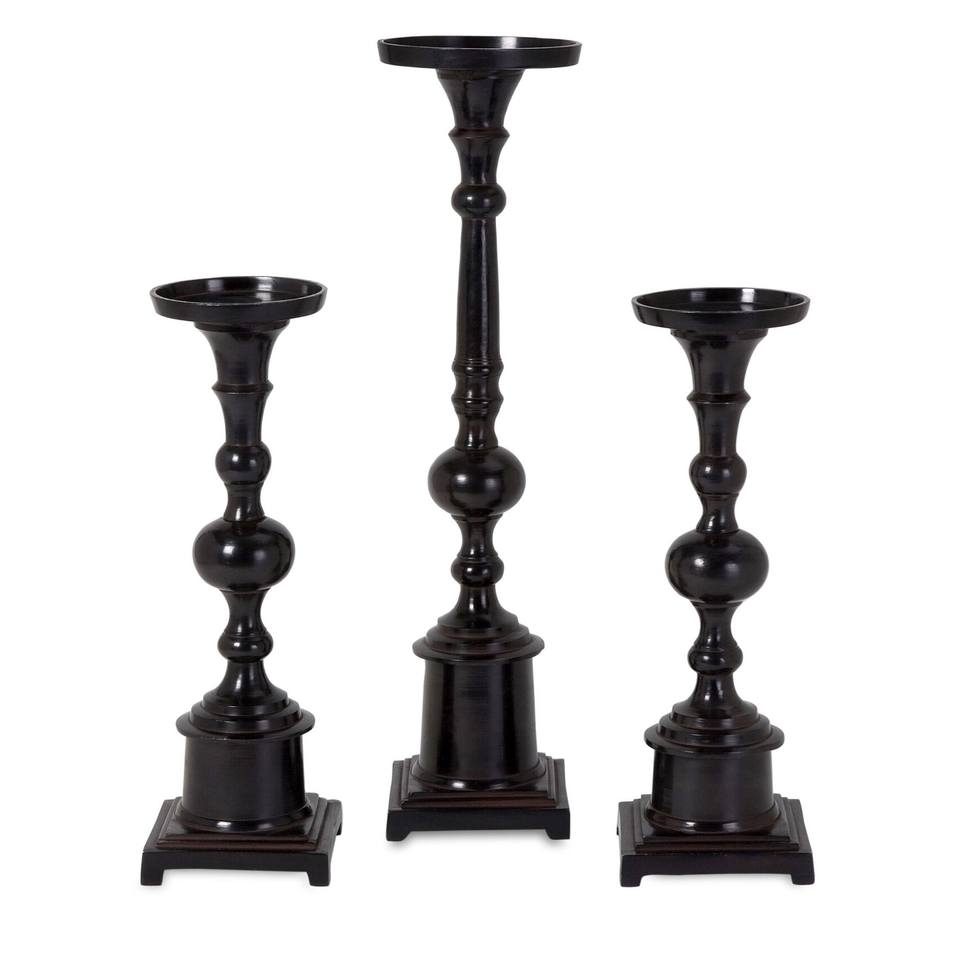 Ensemble de grande taille de haute qualité de 3 bougeoirs en bois de manguier éclairage décoratif pour la maison fait à la main noir antique
