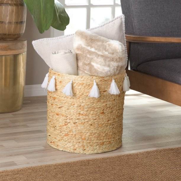 Grands paniers de rangement de haute qualité jacinthe d'eau tissé à la main poignées en bois Logo personnalisé OEM acceptable pour le stockage des vêtements