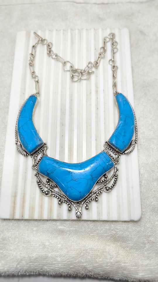 Haute qualité grand collier de pierres précieuses Turquoise bijoux en argent Sterling Boho pour les femmes Style classique pour les fiançailles