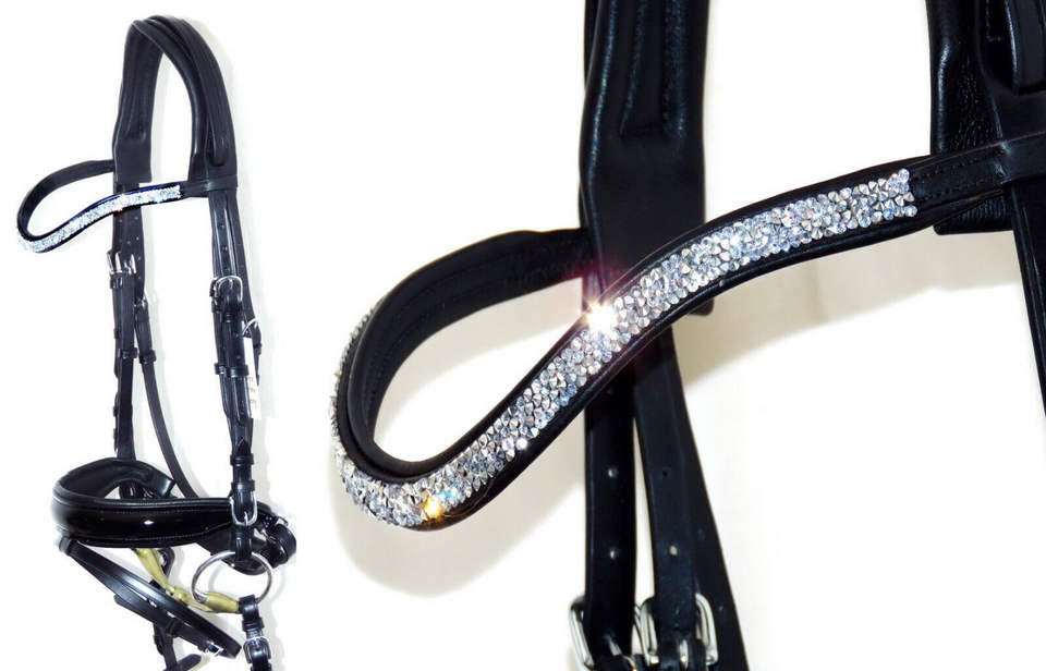 Bride anatomique en cuir de haute qualité avec bande de front en cristal nouvel accessoire de bride de cheval