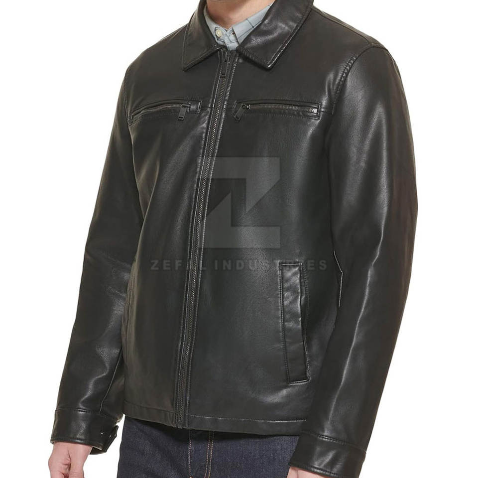 Veste en cuir personnalisée de haute qualité pour hommes col montant Logo avant mode d'hiver imperméable et respirant