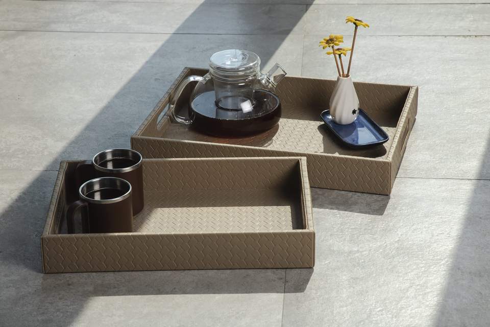 Plateau de service en cuir de haute qualité taille personnalisée et Logo petit déjeuner vaisselle plateau de cuisine avec poignée à faible coût
