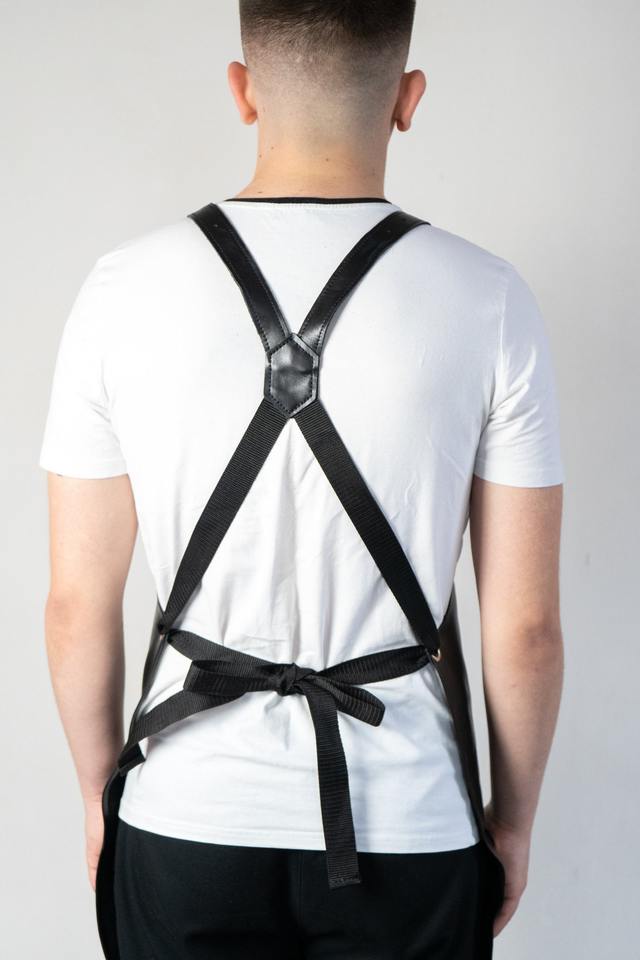 Tablier croisé de dos de bavoirs adultes de mode réglable de taille en cuir de haute qualité avec des poches LPN-0107