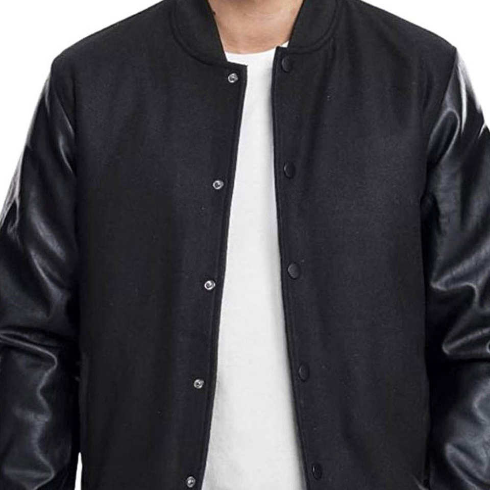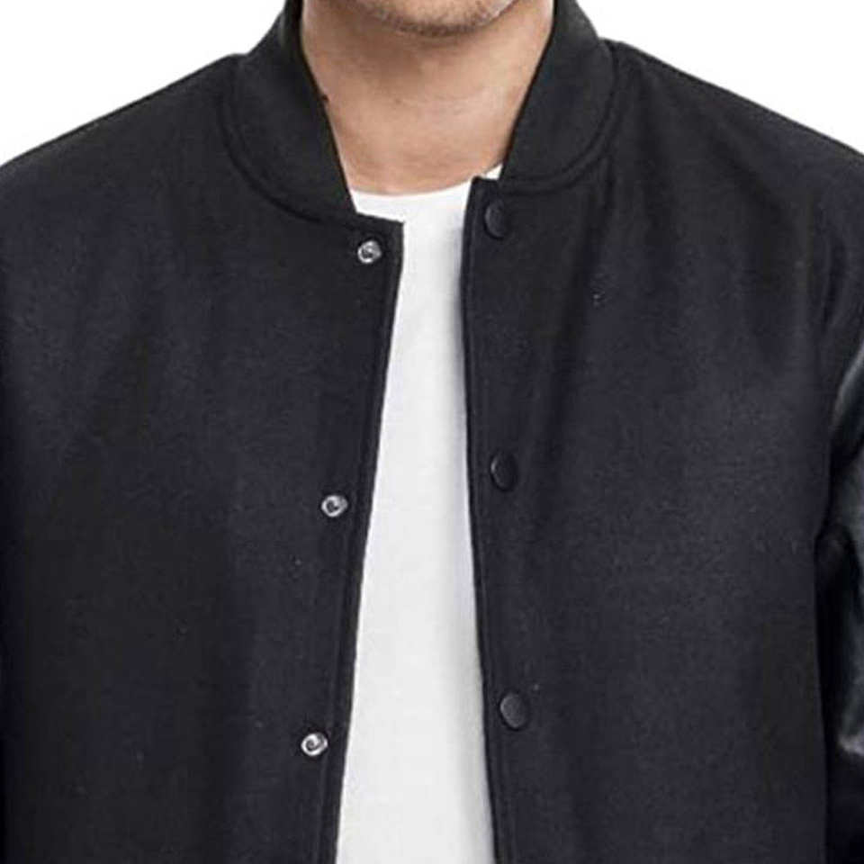 High Quality Letterman College Varsity Jacket For Men's Black Body Windproof Quick Dry Button Up Varsity Jacket For Winter Use