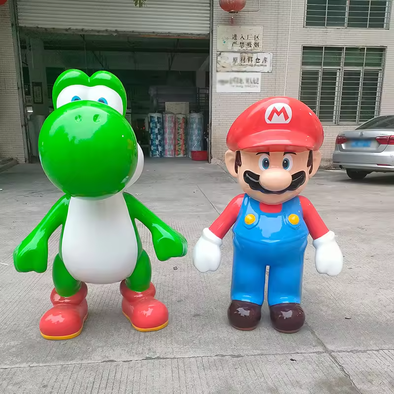 Statue de Mario et Luigi de haute qualité grandeur nature en fibre de verre Sculpture en résine artisanale modèle de mascotte d'art