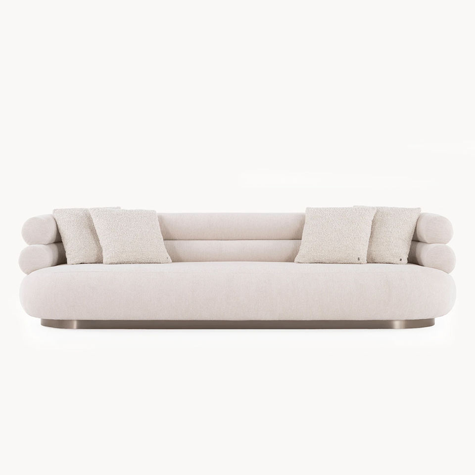 Canapé moderne de haute qualité, beige clair, arrondi, 3 places, base en métal, tissu bouclé