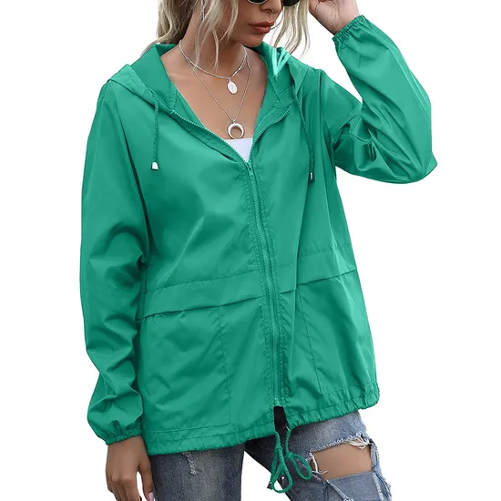Haute qualité léger Polyester femmes imperméable coupe-vent à capuche veste voyage compressible extérieur vêtements de pluie personnalisé