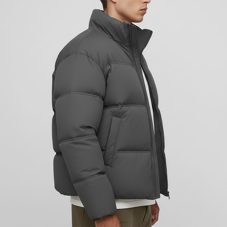 Veste matelassée légère de haute qualité, couleur unie, pour homme, col montant, logo imprimé personnalisé, coupe-vent, veste à bulles