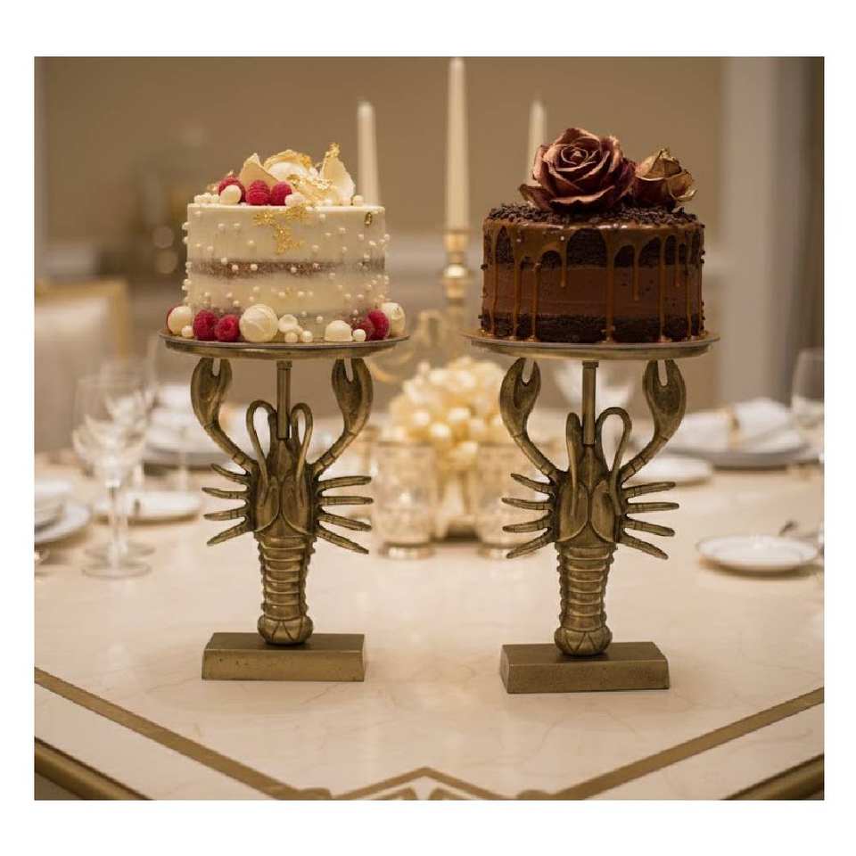 Support à gâteau de haute qualité en forme de homard, en aluminium moulé, finition laiton moderne, nouvelle arrivée, pour table à manger, décoration de mariage et d'anniversaire