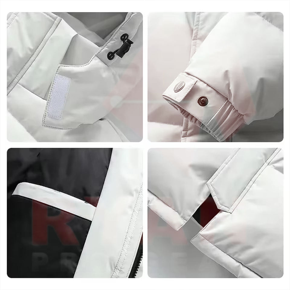 Blousons longs matelassés de haute qualité avec col montant et logo frontal, unisexe, couleur/design/impression personnalisés, grandes tailles, fourniture directe usine