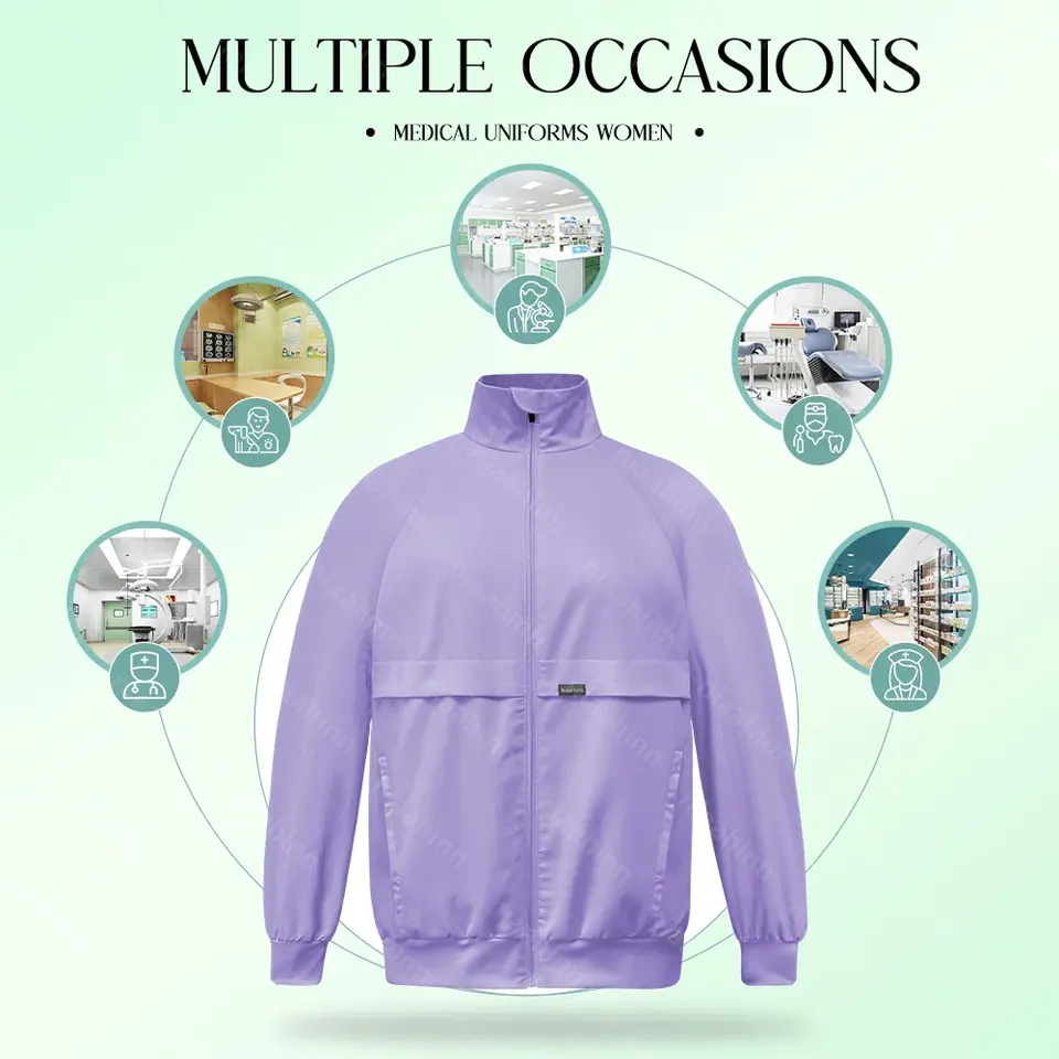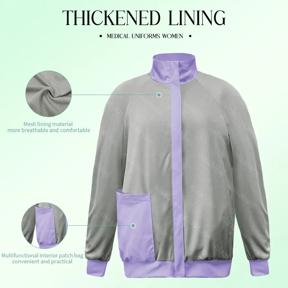 Haute qualité à manches longues chaud gommage veste femmes hommes clinique dentaire hôpital médical pardessus gommage uniformes en gros personnaliser