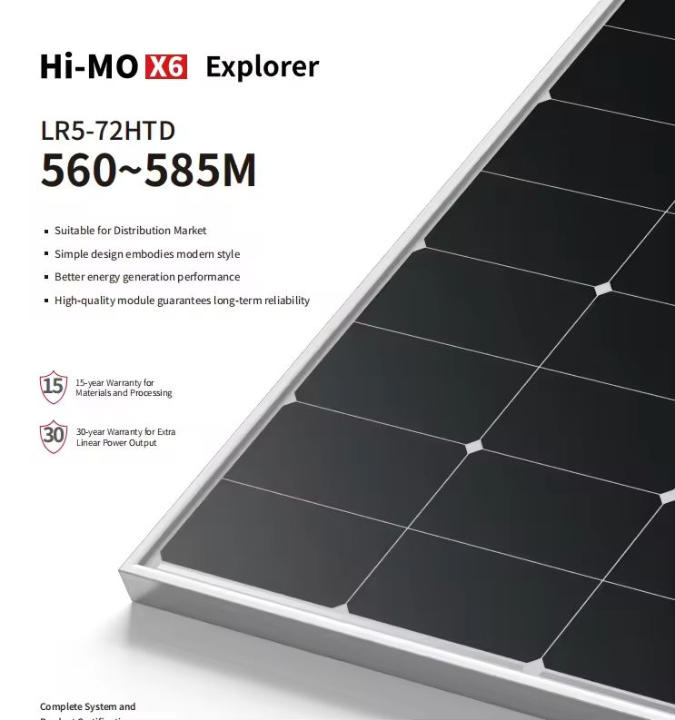 Panneau solaire Long1 de haute qualité Himo 6 Explorer LR5-72HTH 560 ~ 585M N Type Mono 560w 565w 570w 575w 580w 585w Panneaux solaires LONG1