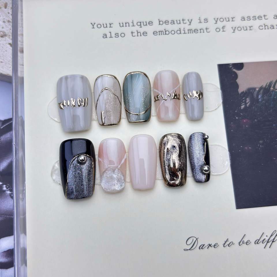 Faux ongles longs en acrylique de haute qualité, design luxueux, réutilisables, imprimés à la main, ongles artificiels faits à la main