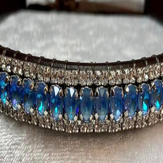 Harnais en cuir finition de luxe de haute qualité, bande de sourcil de cheval dans toutes les tailles personnalisées avec 3 rangées de cristaux strass bling