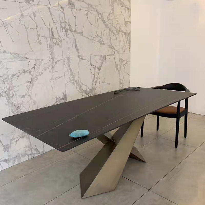 Table à manger ovale de haute qualité, luxueuse, grande, 8 places, Greenstar GS2138, pieds en acier inoxydable, plateau en céramique, marbre, résine