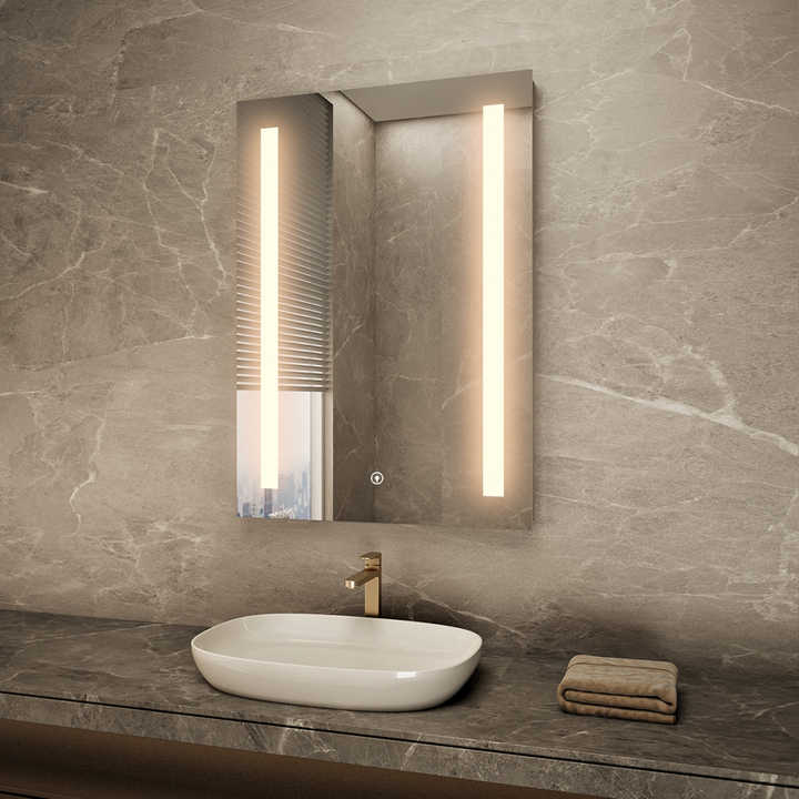 High Quality Luxury Light IP44 Rated Modern Bathroom Rectangle LED Mirror with Touch Sensor Memory Function Illuminated Design