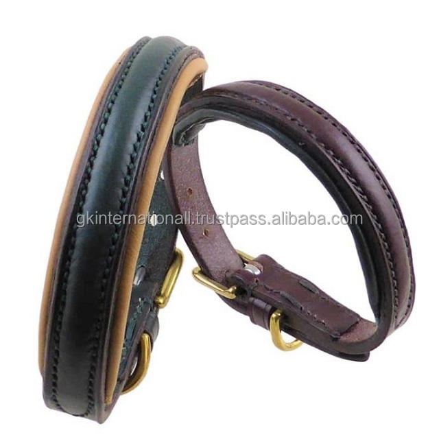 Collier de chien de luxe rembourré en cuir surélevé avec coutures colorées et rembourrage, matériel en laiton massif, accessoires pour animaux de compagnie