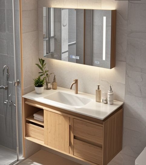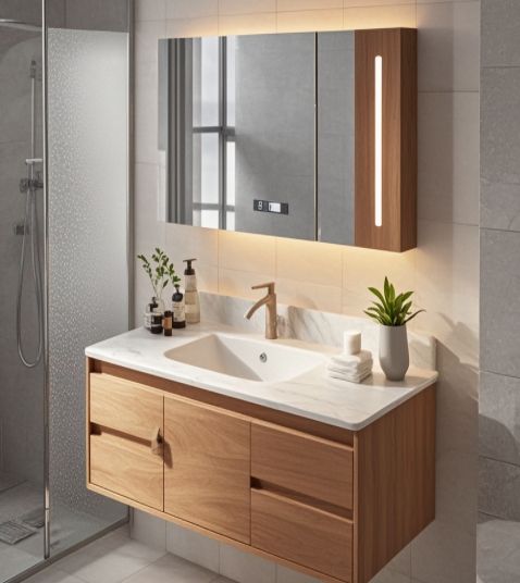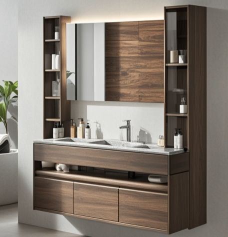 High Quality Luxury Sink Vanity European Style Classic Vanities Mdf Bathroom Cabinet Water-resistant Mirror Modern