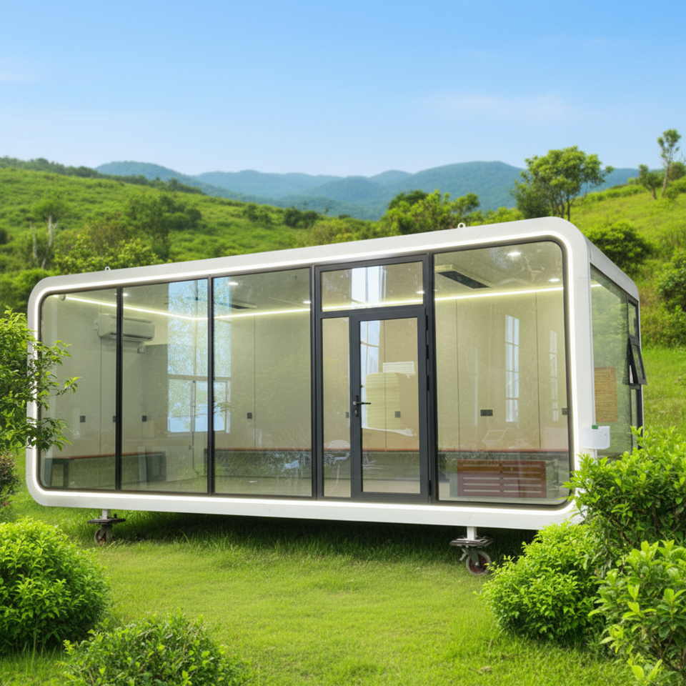 Villas de luxe de haute qualité, structure en acier et aluminium, écologiques, alimentées à l'énergie solaire, design moderne, maison capsule, petite maison mobile