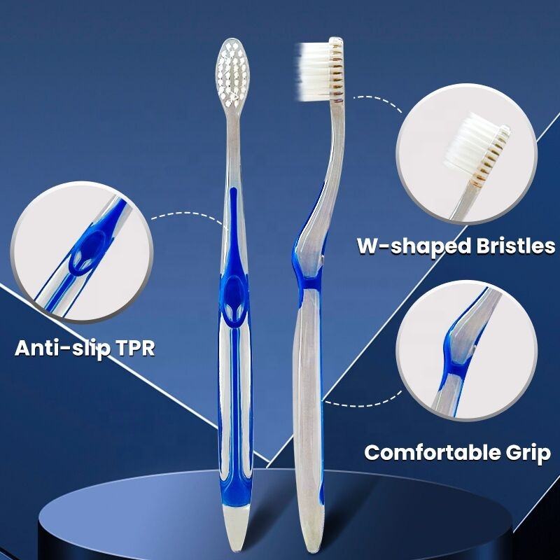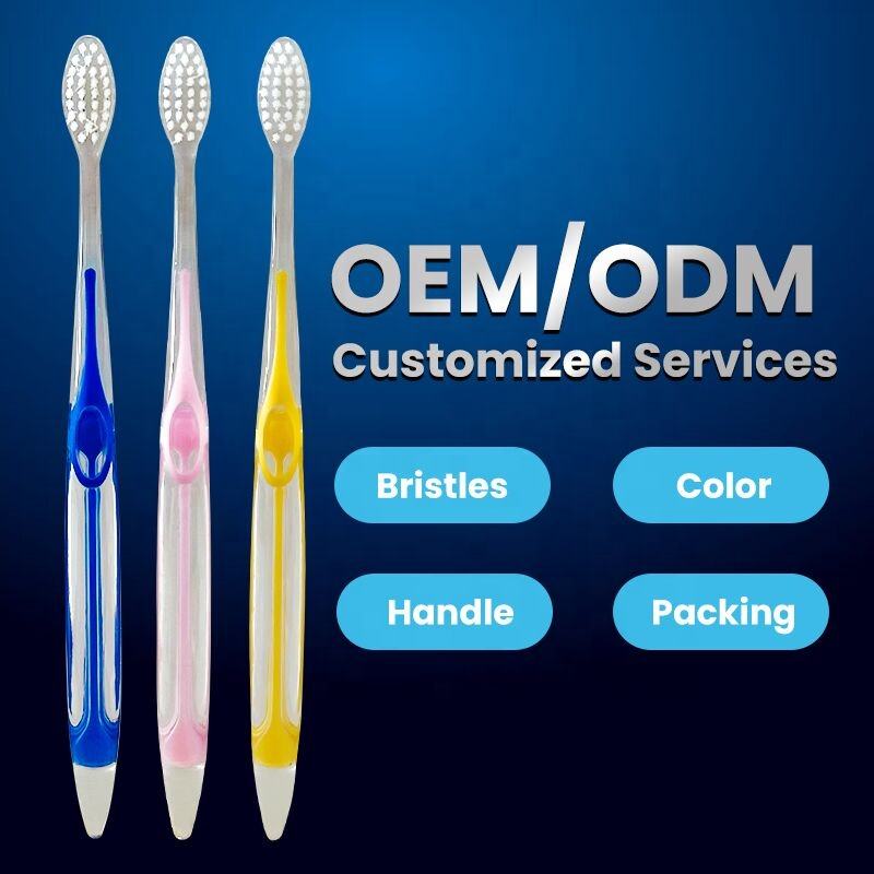 Brosse à dents de luxe de haute qualité, manche transparent en PTEG, poils extra doux, conçue pour les gencives sensibles, brosse à dents manuelle pour usage domestique