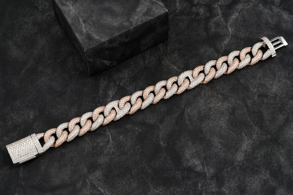 Two-tone White Sliver\rose gold Plated 18mm VVS Moissanite diamond Cuban bracelet \Necklace Hip-hop Fashion Bracelet