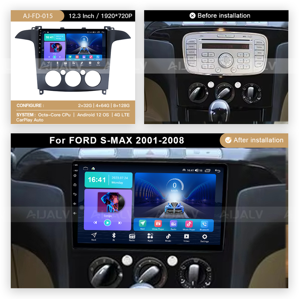 Haute qualité manuel AC Android Auto écran de voiture pour FORD S-MAX Ford Galaxy populaire multimédia lecteur vidéo Navigation GPS Carplay