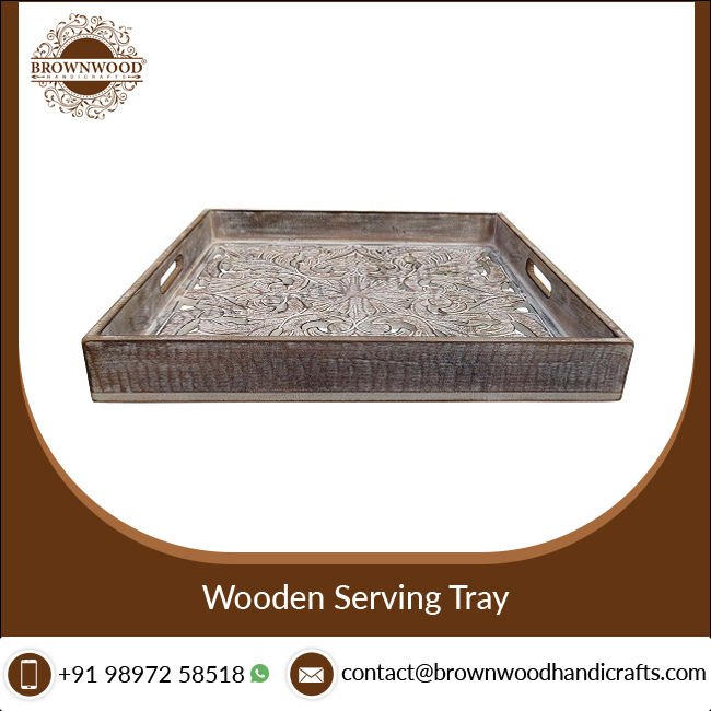 Product Name:MDF Hand Carved Large Square Serving Tray With Handles