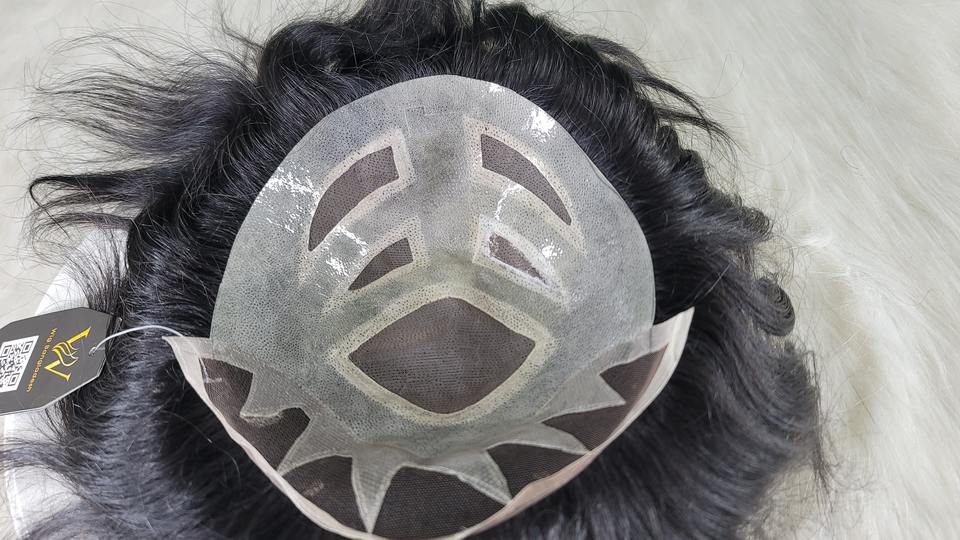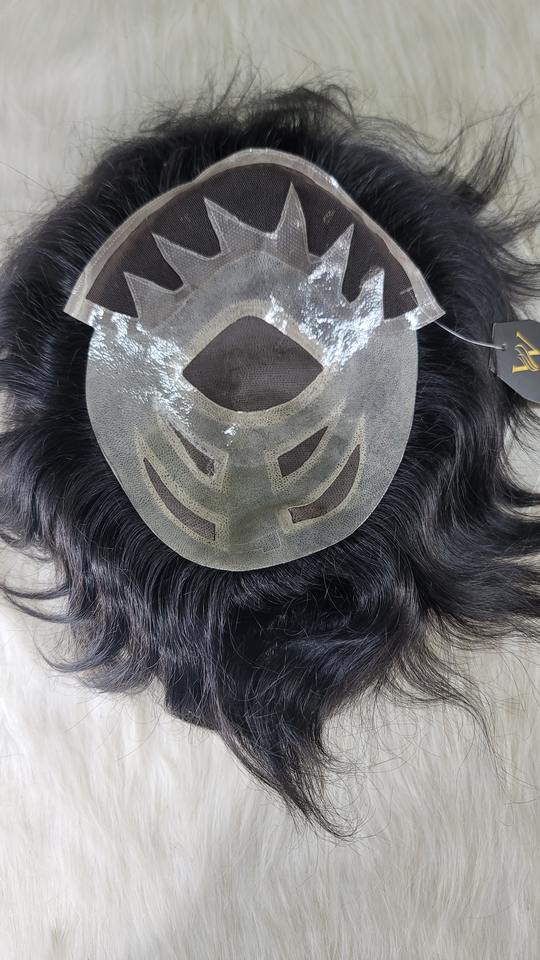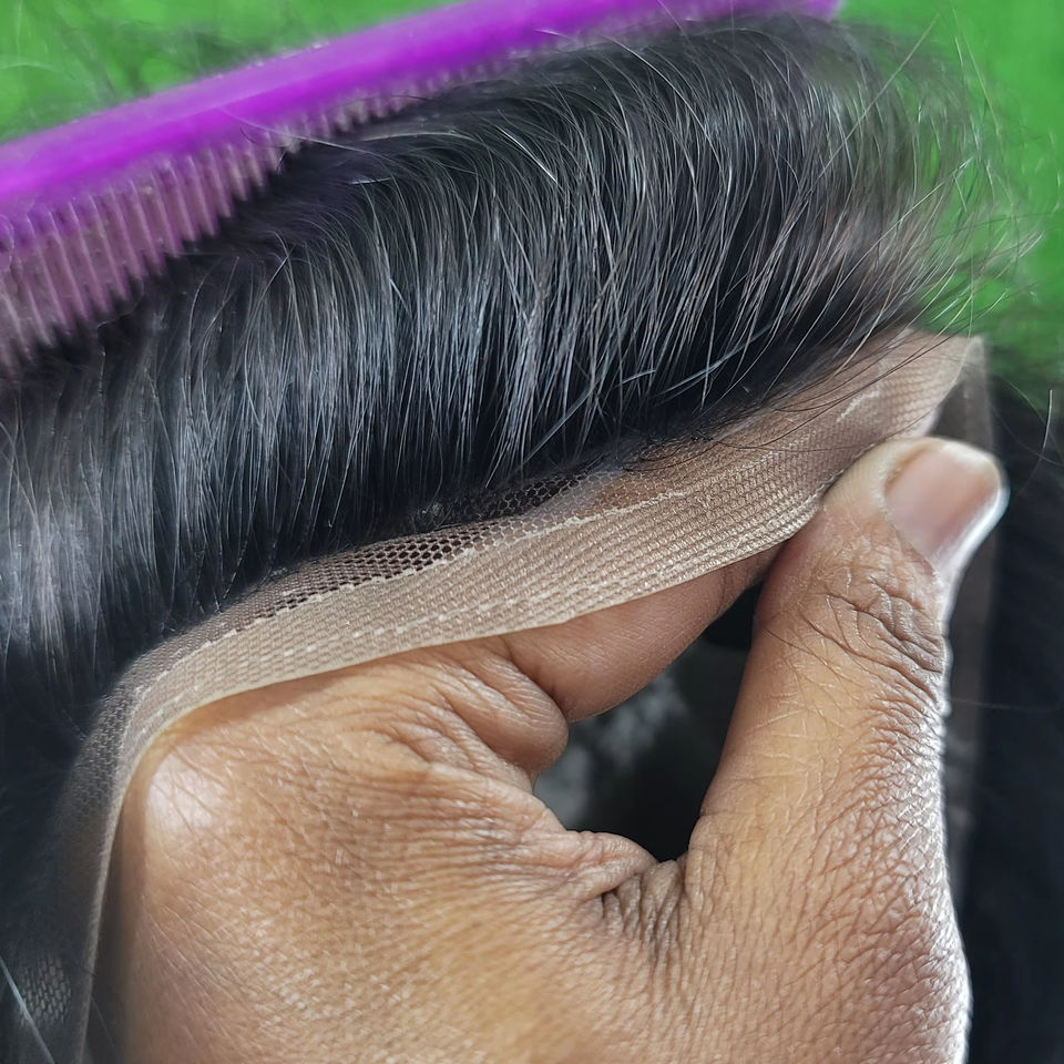 Perruque de remplacement de haute qualité en cheveux indiens Remy, modèle MGM, densité 100%, nouée à la main, nœuds en V, base en dentelle et PU