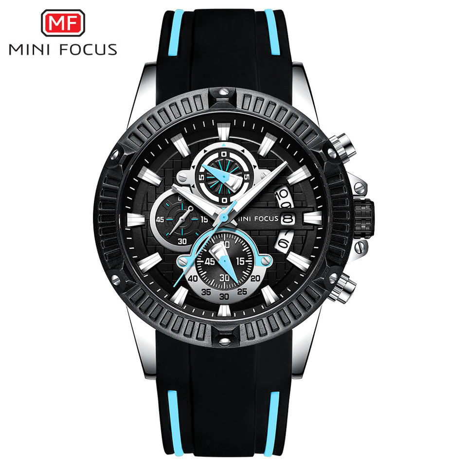 Haute qualité MINI FOCUS 0244 G Quartz montre analogique pour hommes en cuir étanche céramique japon mouvement numérique boîte de dessin animé de luxe
