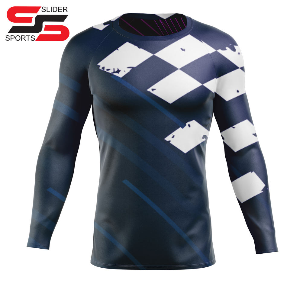 Rashguard Unisexe de Haute Qualité pour MMA, Imprimé par Transfert Thermique, Mélange 85% Polyester 15% Spandex, Respirant, Anti-Bactérien, Séchage Rapide