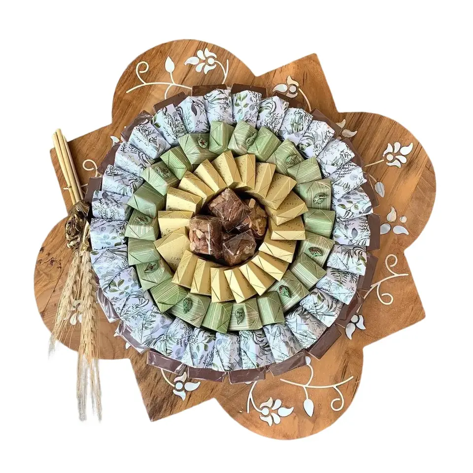 En bois chocolat Pâtisserie gâteau stand MOP incrusté plateauNom du produit