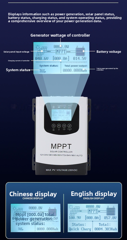 Contrôleur de Charge, Station de travail solaire, Contrôleur d'éclairage, Contrôleur thermique, Contrôleur de tension, Système de contrôleur solaireApplication