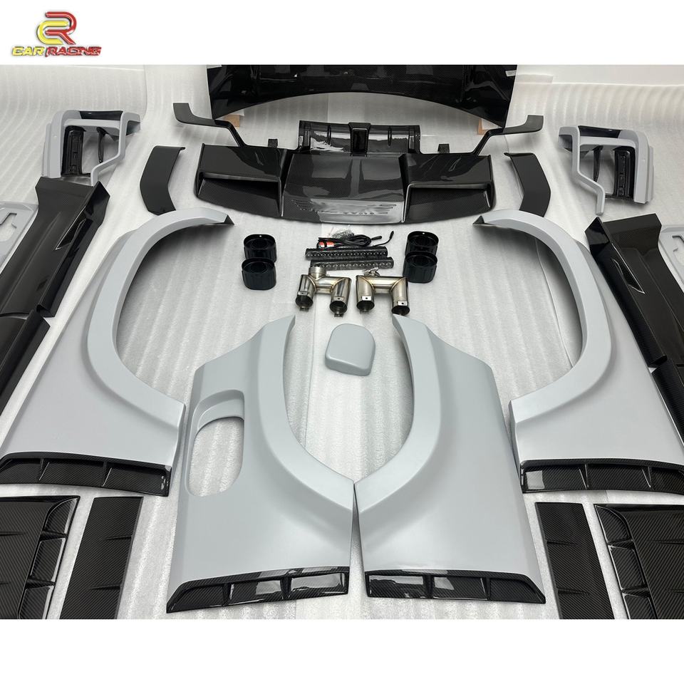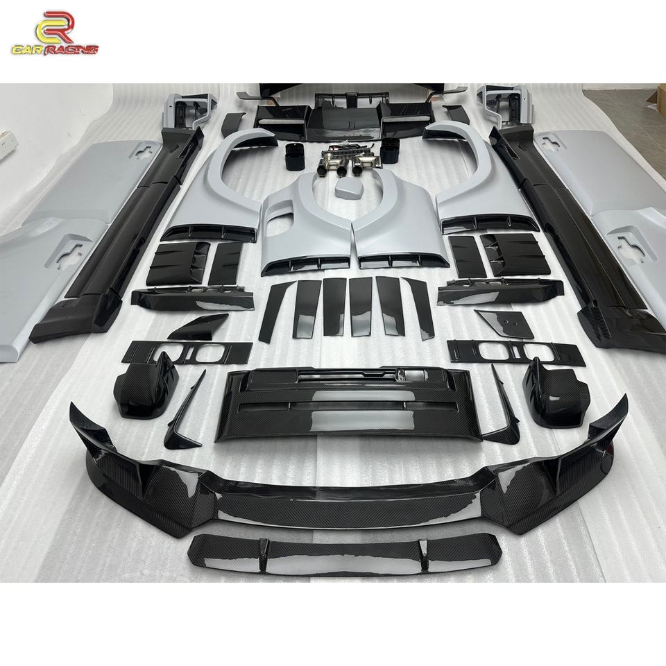 Kit carrosserie de haute qualité en fibre de carbone partielle de style MSY avec capot, jupes latérales, embouts d'échappement et spoiler pour Land Rover Defender 2024