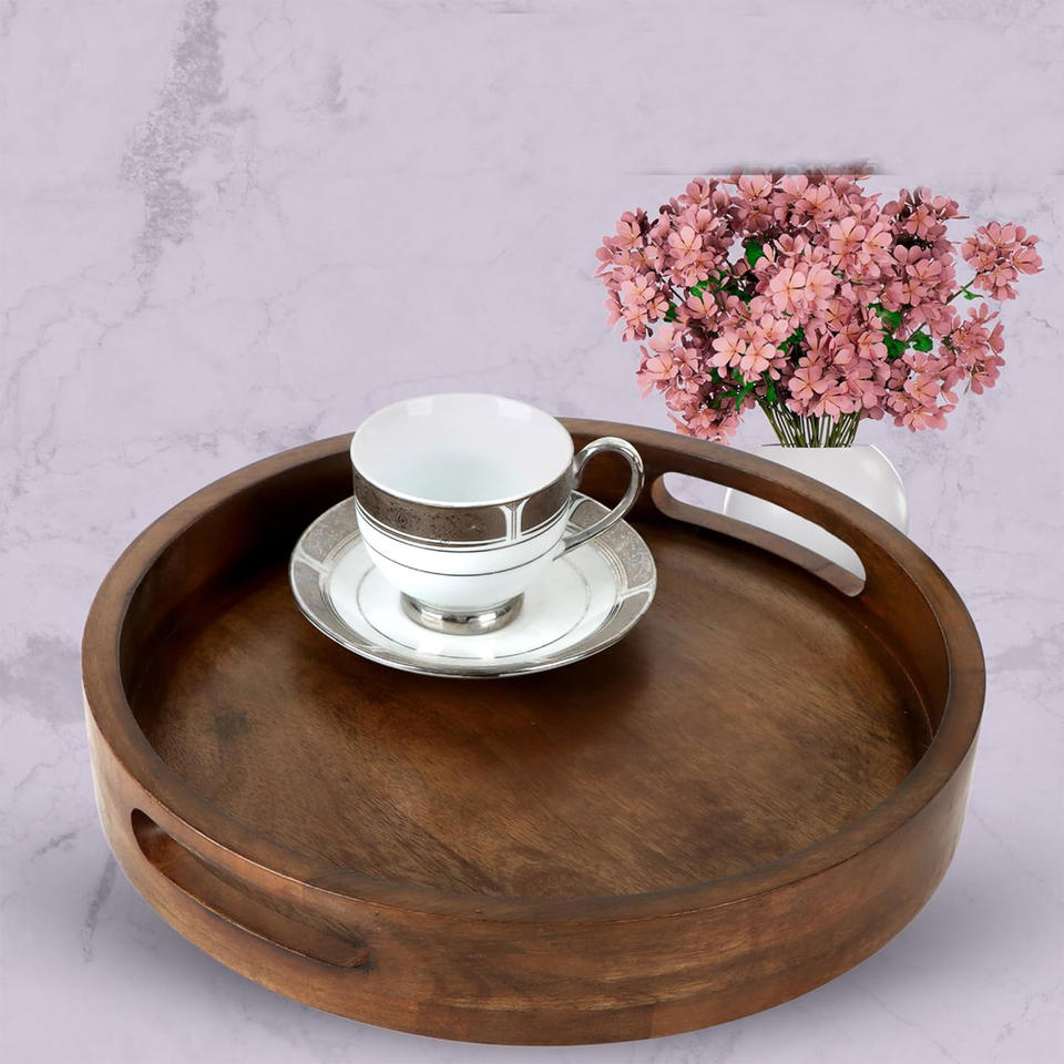 Nom du produit:Plateau de service en bois avec poignées en métal